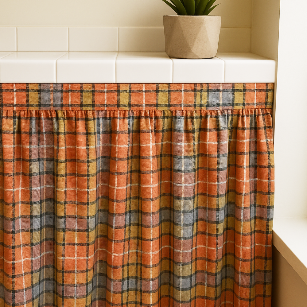 Réchauffez instantanément votre cuisine avec cette somptueuse jupe d’évier au motif tartan automnal. Les tons orangés apportent une chaleur immédiate et accueillante à la pièce.